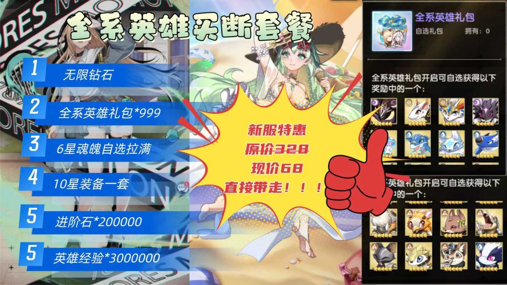 💰 首充 68 元 → 直接全系英雄 999